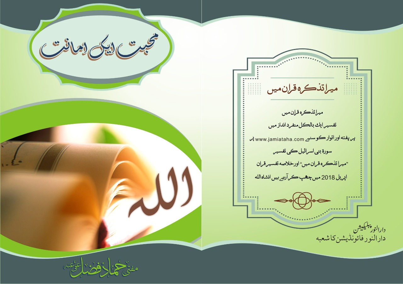 ایک خوبصورت عنوان کے ساتھ ایک اہم۔موضوع پر کتاب ۔ محبت کے موضوع کاایک منفرد اسلوب سے جائزہ ۔ویلنٹائن ڈے کے حوالے سے تمام تر تاریخی حقائق کا احاطہ کرتے ہوئے۔یہ اثر انگیز بیان اب تحریری شکل میں دستیاب ہے. تشبہ اور مشابہت پر تفصیلی مواد۔ مثالوں کے ساتھ پیش خدمت ہے. ایک ایسی کتاب جوآپ کی زندگی میں مثبت سوچ اور فکر پیدا کرے. مولف :مفتی حماد فضل کل صفحات - 36 سنگل کلر پرنٹنگ بہترین کاغذ قیمت 80روپے . 40% ڈسکاونٹ کے بعد آپ کو یہ کتاب 40 روپے کی ملے گی ۔ علاوہ ڈاک خرچ ۔ نوٹ :ان چاروں کتب کا تمام منافع دار النور پلیکیشن اور دار النور فاونڈیشن کے لئے وقف ھے ۔اس لئے آپ زیادہ سے زیادہ ان کتب کو خرید کر فاونڈیشن کے کام میں حصہ ڈالئے ۔ دار النور فاونڈیشن کے تحت چلنے والے ادارے 1۔جامعہ طہ 2۔معمار پاکستان سکول 3 ۔دار النور پبلیکیشن 4۔النور ایجوکیشنل کمپلیکس و مسجد النور (زیر تعمیر ) کتابیں ہم سے براہ راست منگوانے کے لئے ان نمبروں پر رابطہ کریں ۔برائے فون0304.4155140 (0322 84 84 434صرف واٹس ایپ یا میسج ) یہ کتابیں آپ درج ذیل اداروں سے بھی لے سکتے ھیں مکتبہ سید احمد شہید رح ادارہ اسلامیات دار الاشاعت جامعہ طہ ۔اکیڈمی روڈ والٹن مکتبہ رحمانیہ درج ذیل ویب سائٹس سے بھی خرید سکتے ھیں kitabjam.com jamiataha.com askmuftihammad.com